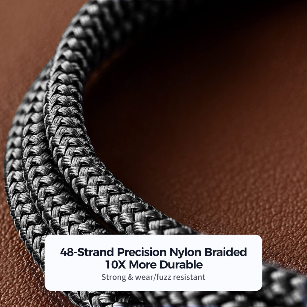 • Este durabil și rezistent. Împletitura de nailon este de 10 ori mai durabilă și rezistentă la uzură. Va rezista la până la 10.000 de îndoiri.